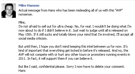 UPDATE: Mike has responded to our inquiry and it appears that he is just an AVP Fan & has lot of friends in the volleyball world so he’d like to stay anonymous. Mike said that Hans replied to some posts he made on the AVP facebook page and he thought everyone should know what the AVP and Hans are doing.