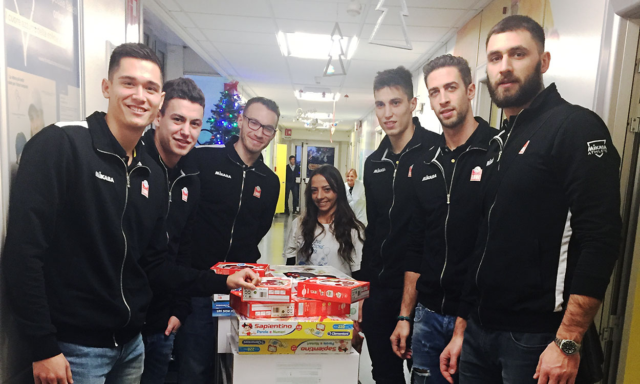 Micah Christenson, Tsvetan Sokolov, Jenia Grebennikov, Klemen Cebulj, Denis Kaliberda and Davide Candellaro visited a children’s hospital yesterday in Ancona to give gifts and to brighten up their days during this Holiday Season.