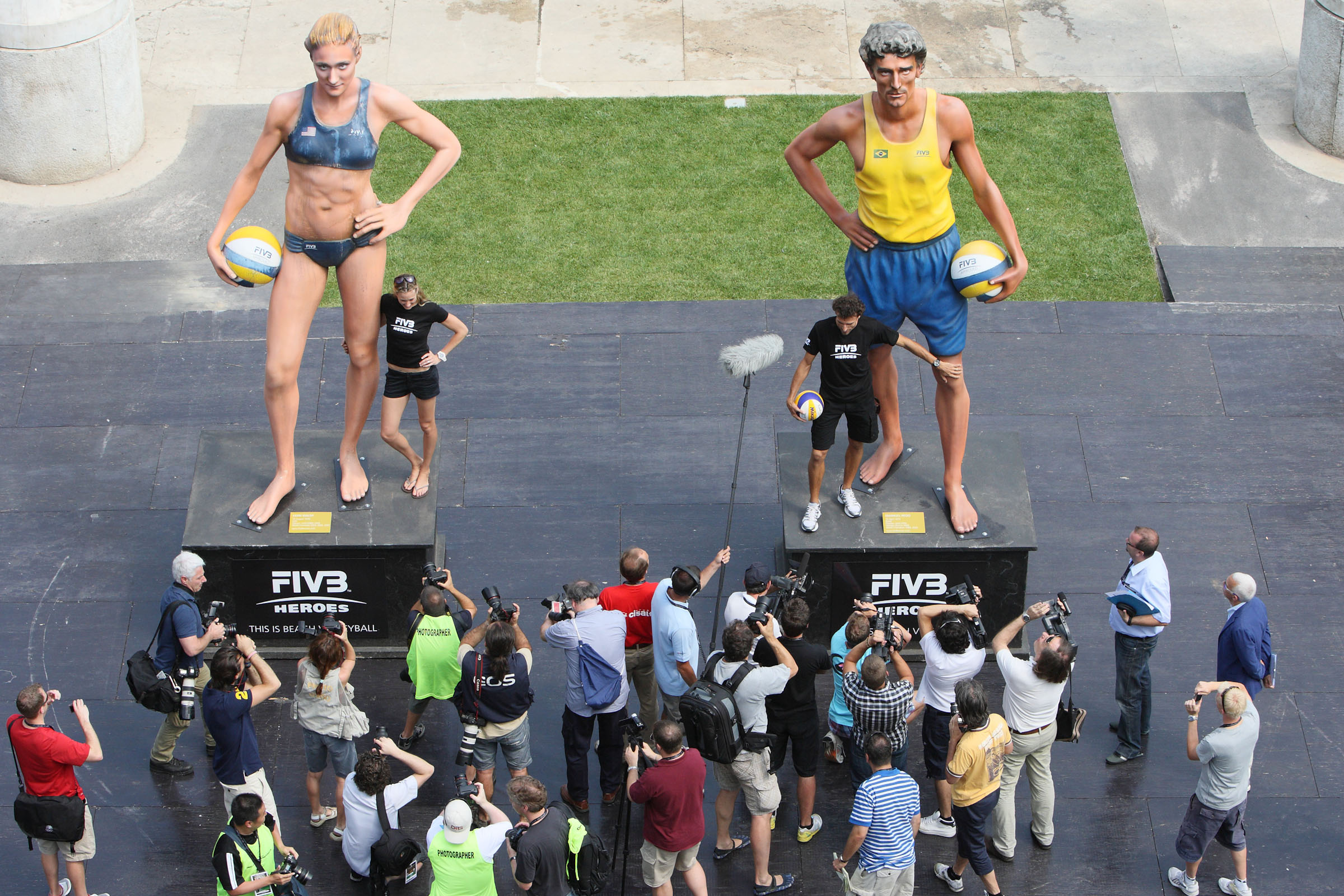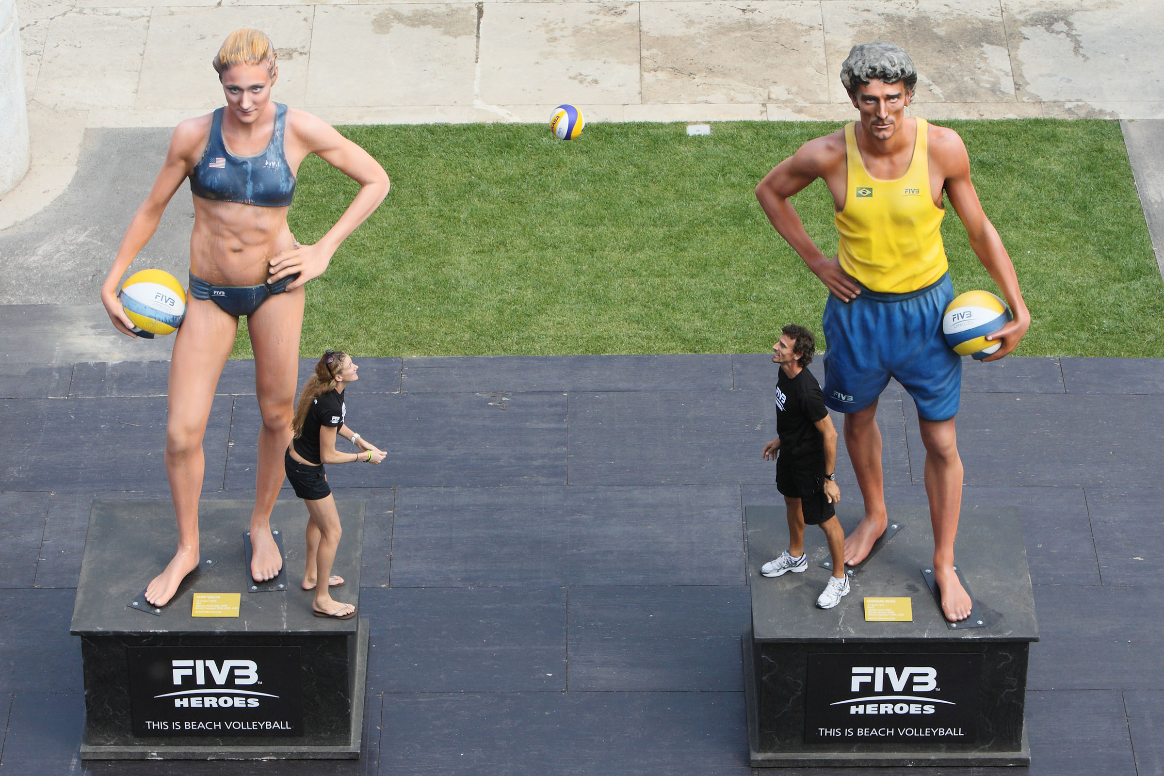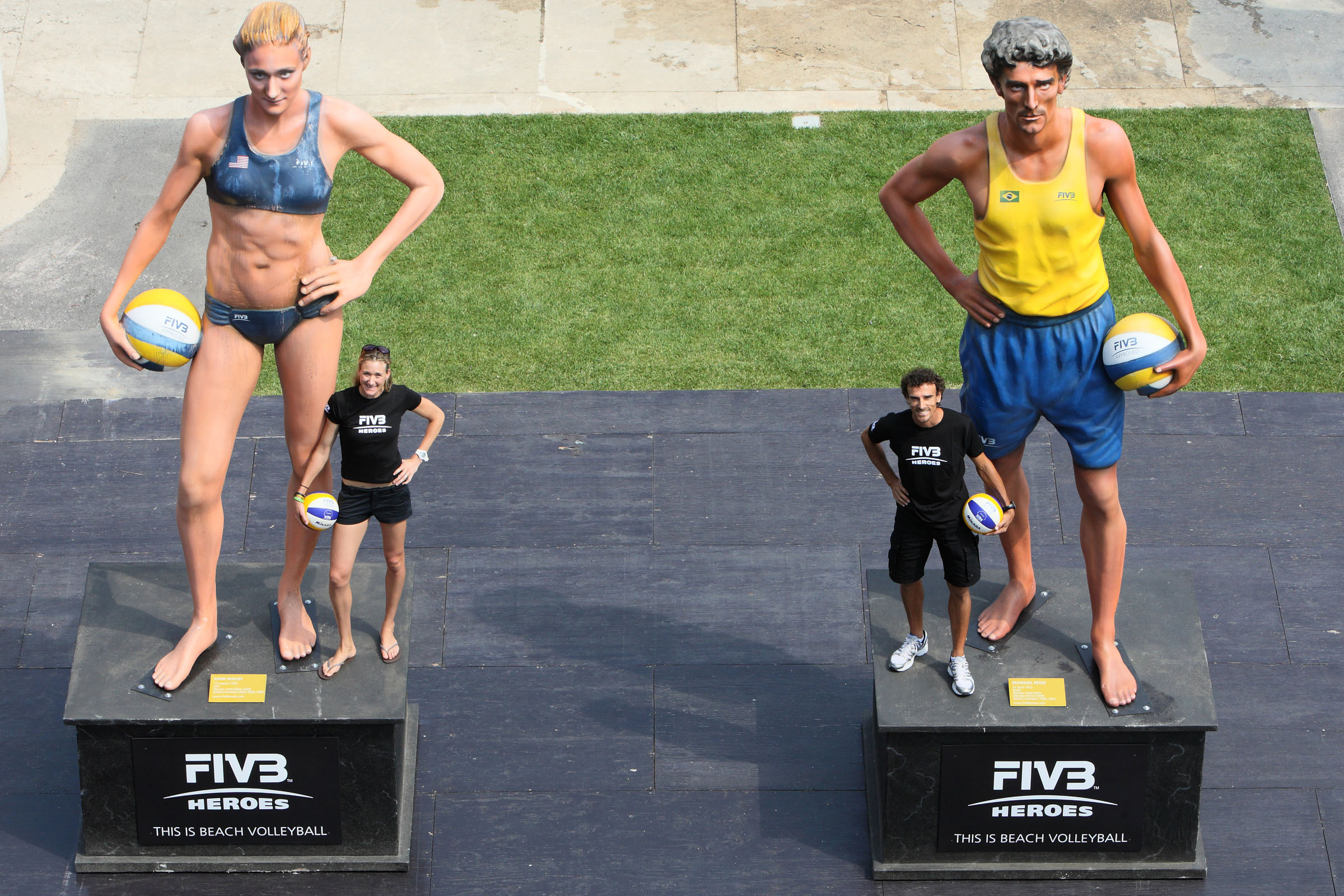 Earlier today in Rome where the 2011 FIVB Beach Volleyball World Championships (men and women) are taking place, the FIVB unveiled the statues of 2 of the world’s best players: American Kerri Walsh and Emanuel Rego from Brazil.