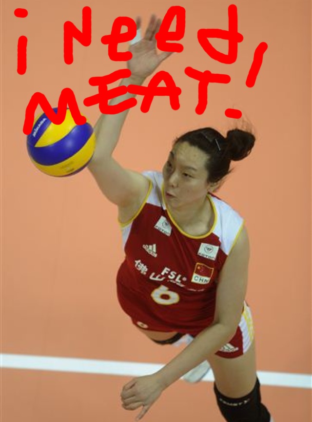 The only match they won was against Cuba and lost to eventual champions USA, Brazil, Turkey and Thailand. Coach Yu Juemin finally talked to the media saying that his team lost pretty badly because they declined to consume any meat throughout the Final Round. His players did NOT have enough strength and energy to play well.