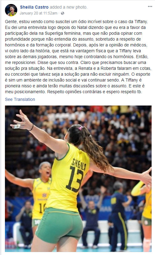 Sheilla Castro has changed her mind on having trans athletes play in the Brazilian Superliga – the country’s top professional league. The two time Olympic Champion reveals that at first she was okay having a trans player (male to female) play but not anymore. She has changed her opinion about it after reading the opinions of others especially those who are in the medical field.