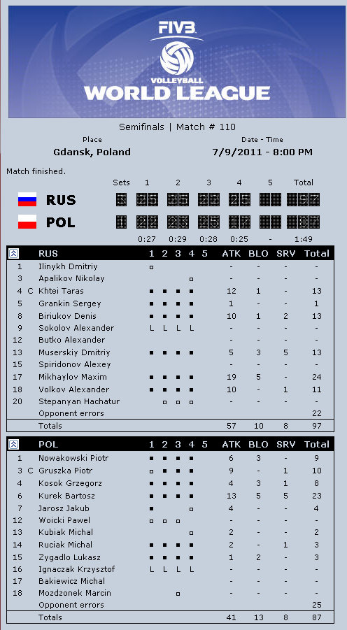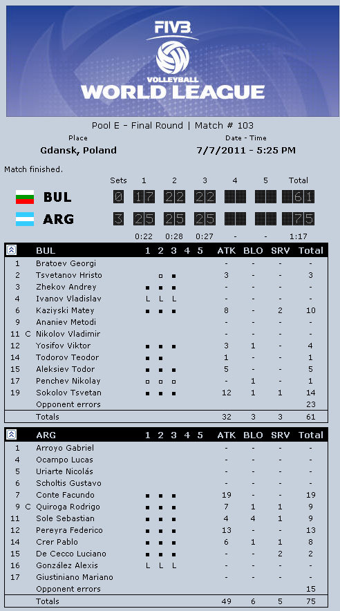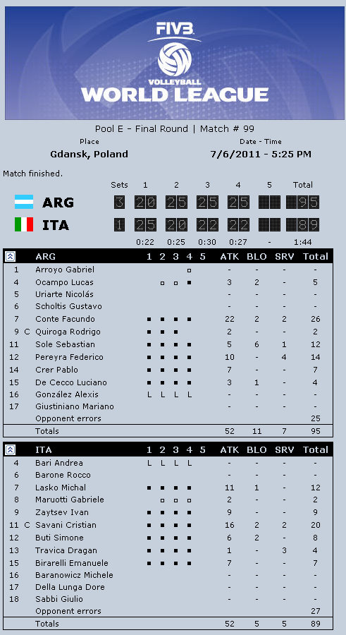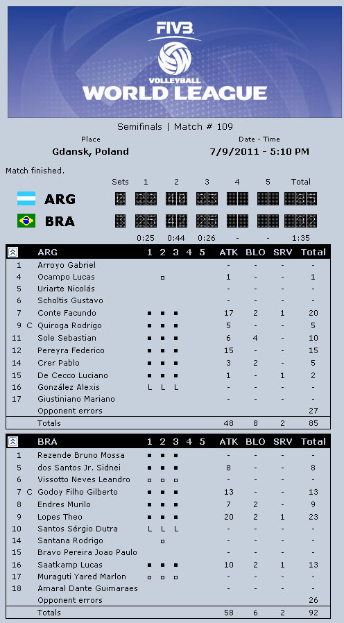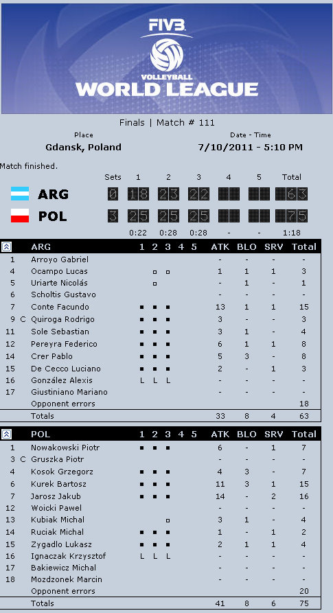 Argentina coach Javier Weber: “I think today we played very poorly, not like in other games. I think Poland played much better in attack and service and it made the difference. I feel very bad. I believed in the medal. I am very happy with my team, they played amazing in the entire World League. It is a terrific experience for us. I have very young players, hungry to play all the time. Luciano De Cecco is a fantastic player, fantastic setter. I believe that in one or two years he might be the best setter in the world. He needs to get there step-by-step. It is a very difficult position, but he understands it. I have many many talented players, but the most important thing is to play as a team.”