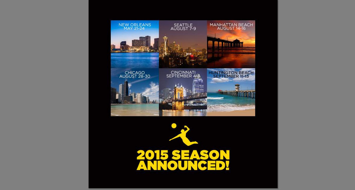 Three tournaments return from 2014 – the AVP Cincinnati Open, AVP Championships at Huntington Beach and the legendary AVP Manhattan Beach Open, the longest running and most prestigious event in the sport. In addition, the AVP will return to New Orleans for the first time since 1999 and to Seattle for the first time since 1990. The AVP will also return to the shores of Lake Michigan for the Chicago Open, a tournament last held in 2009.
