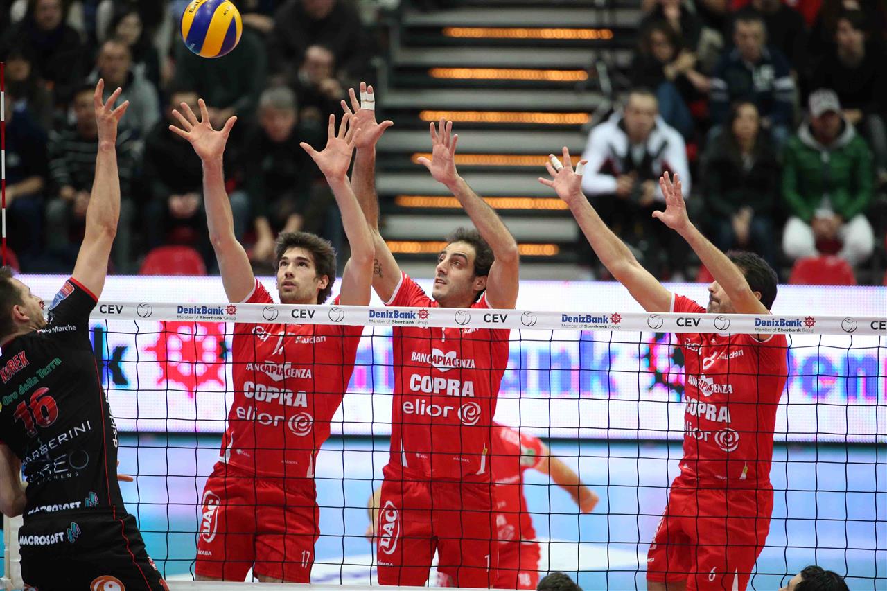 Italy’s vice champions Copra Elior PIACENZA caused a sensation on Thursday night as they fought their way back after losing the away match in straight sets to their compatriots of Lube Banca Marche MACERATA. They first claimed a 3:0 home victory (25-22, 25-19, and 25-20) and after that also the golden set that followed (15-13). A silver medallist from the 2008 edition of the CEV Volleyball Champions League, Copra Elior PIACENZA will be playing in the Playoffs 6 Russia’s Zenit KAZAN, i.e. the team that back then had edged the Italians in the final match played at the Mosir hall in Lodz, Poland.