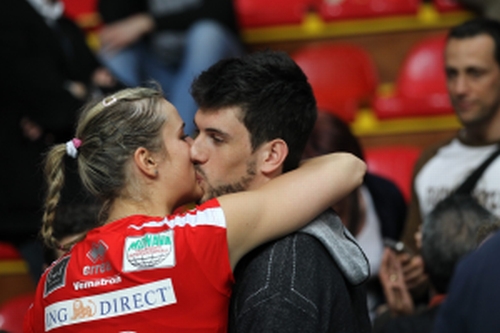 That’s Argentina’s one and only Facundo Conte lip locking  with his girlfriend Helena  Havelkova from Czech Repubic after a match.