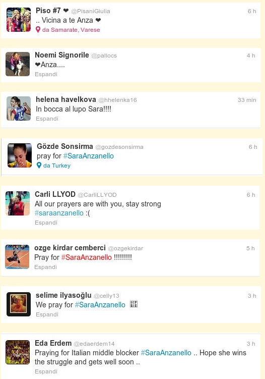 Let’s continue to keep Sara Anzanello in our prayers. The Volleyball World is with you in this battle Sara.