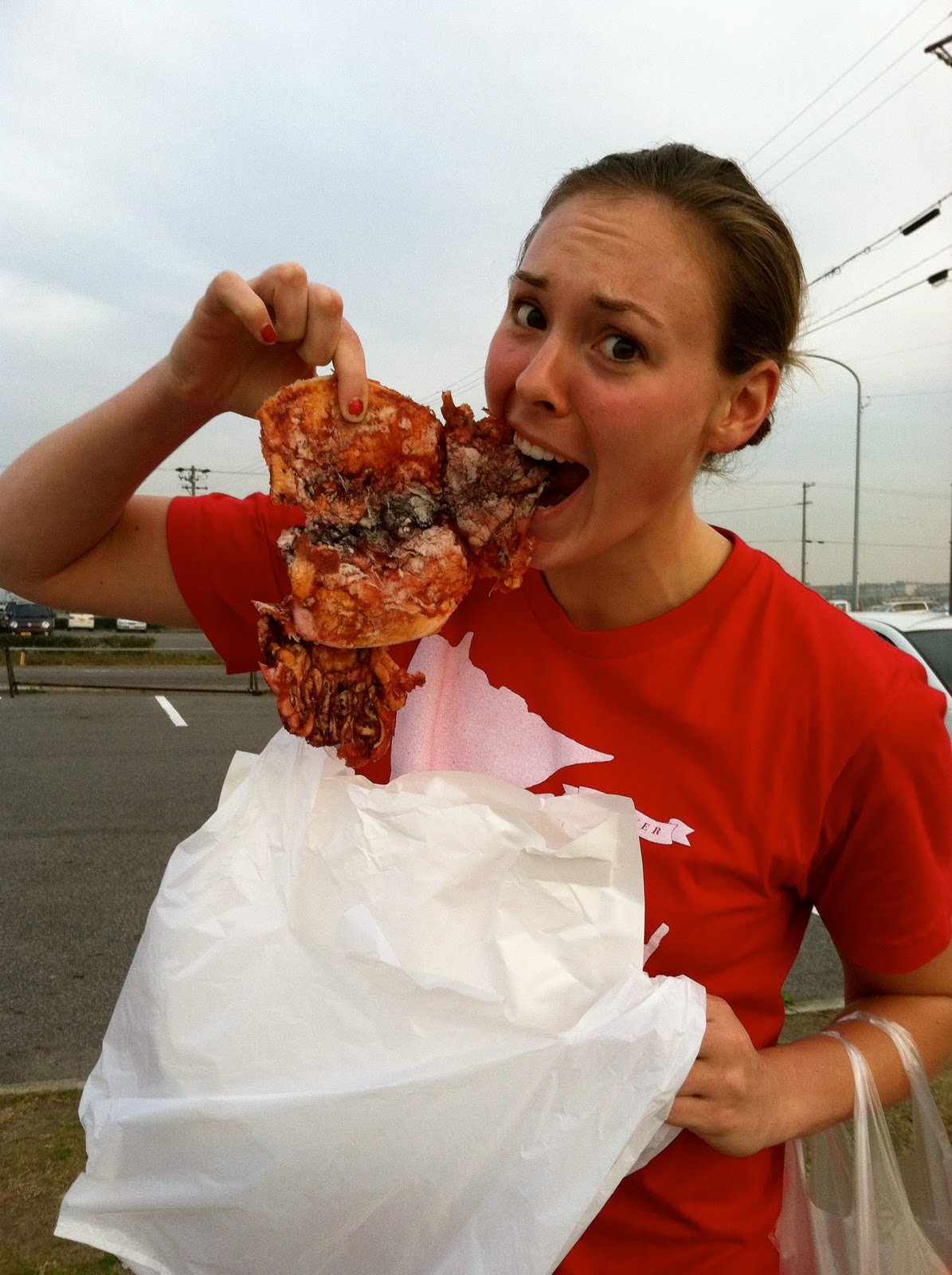 The first meal I tried was not very exciting because it was lunch at the gym which is provided for us every day. The meal usually consists of a salad with ginger dressing, white rice, miso soup, brown tea, a tofu patty, some kind of vegetable, and fruit. I’m sure that doesn’t sound appealing to a lot of people, but I love almost everything i’ve tried since I’ve been here and lunch has been no exception.