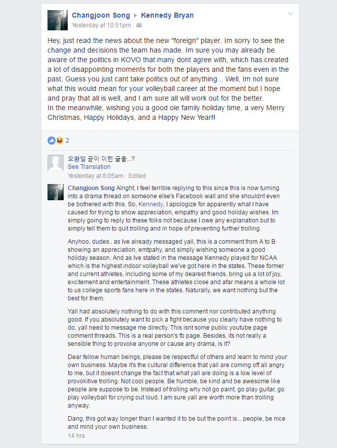 Someone have sent us this Facebook screenshot which may shed some light on Kennedy’s experience in Korea.