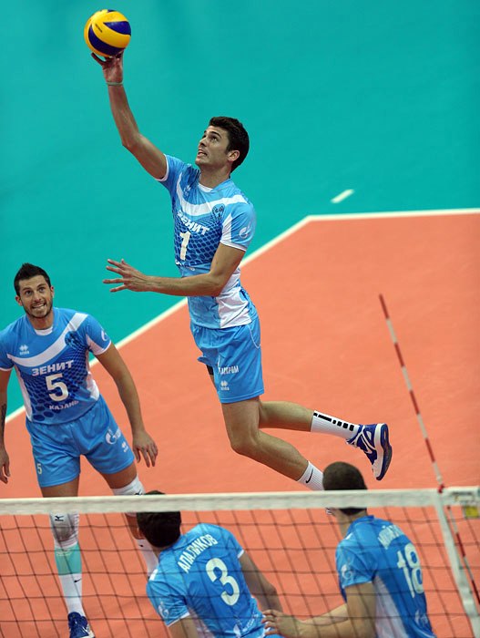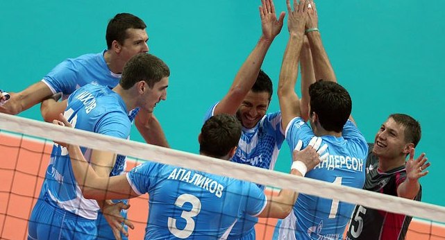 Maxim Mikhaylov, Matt Anderson, Valerio Vermiglio, Yuri Berezhko and Team Zenit Kazan won the 2012 Russian Super Cup in an epic 5 set match versus Lokomotiv NOVOSIBIRSK 3-2 (22:25, 21:25, 25:18, 25:16, 15:10). Mikhaylob led Kazan with 23 points while American outside hitter – who just arrived in Russia recently – fired up his team with 16 points.