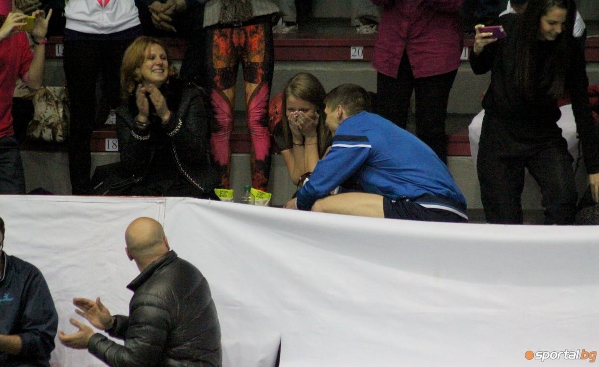 But love was obviously in the gym air when Bulgarian player Simeon Aleksandrov proposed to his girlfriend before a league match a few days ago at the Hristo Botev Stadium in Plovdiv, Bulgaria.