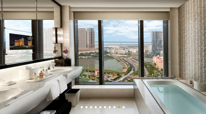 This 5 star hotel cost US$1.9B to make and officially opened in May of this year. Auntie Wikipedia adds that it’s “550,000-square-metre & has 2,200 hotel rooms comprising the 1,500-room Galaxy Macau hotel tower complete with casino and entertainment areas, as well as two hotel partners, the Japanese-owned 410-room Hotel Okura and the Singapore-operated Banyan Tree Hotel that will have 254 suites.”