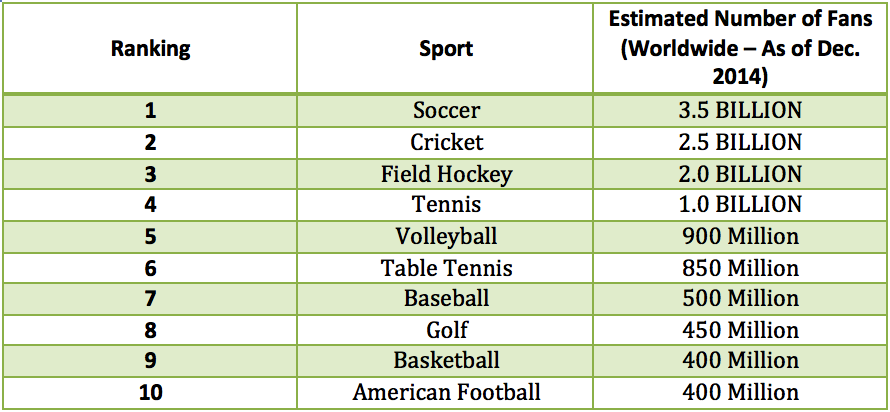 Top 10 Most Popular Sports In The World In 2015: