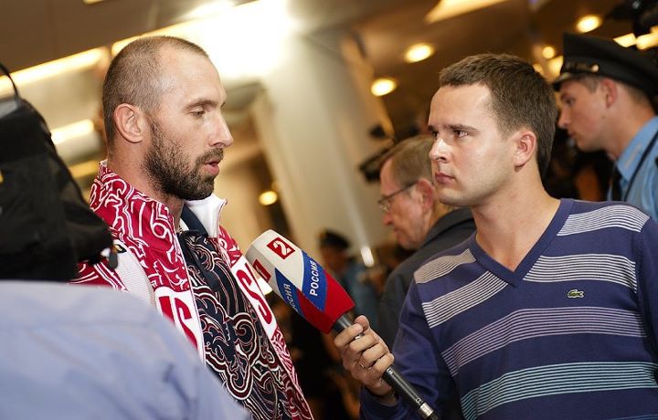 As soon as Coach Alekno, Maxim Mikhaylov, Yuri Berezhko and Team Russia aka 2012 Olympic Champions returned to their motherland, they were welcomed by fans, press and loved ones at the airport.
