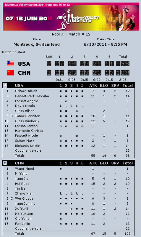 Bronze Medal Match: USA 1-3 China