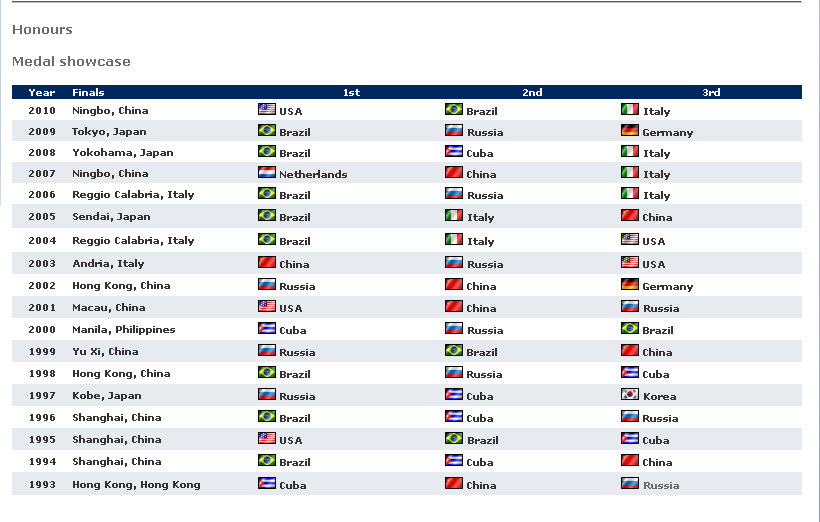 6. Noticeably missing is The Netherlands, 2007 World Grand Prix Champion, who failed to win a spot in the 2011 European Grand Prix Qualification. Russia (without Sokolova), Italy, Germany, Poland (Wild Card) and Serbia (2010 European League Champion) will represent the European zone.