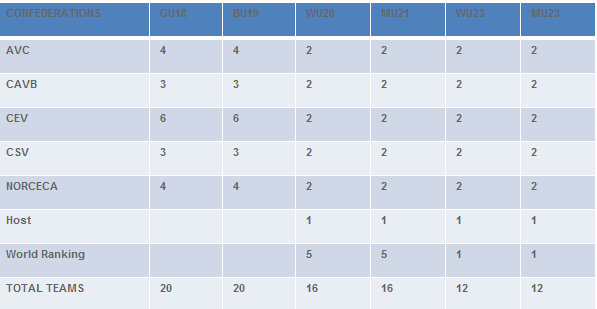 In addition to reviewing the 2013 Age Group World Championships, which included the inaugural FIVB Volleyball U23 World Championships, the Sports Events Council confirmed a proposal to streamline the number of teams participating in the Age Group World Championships as per the following: