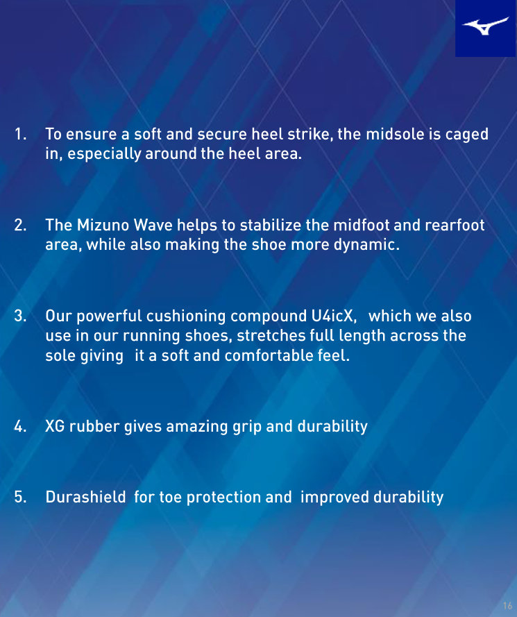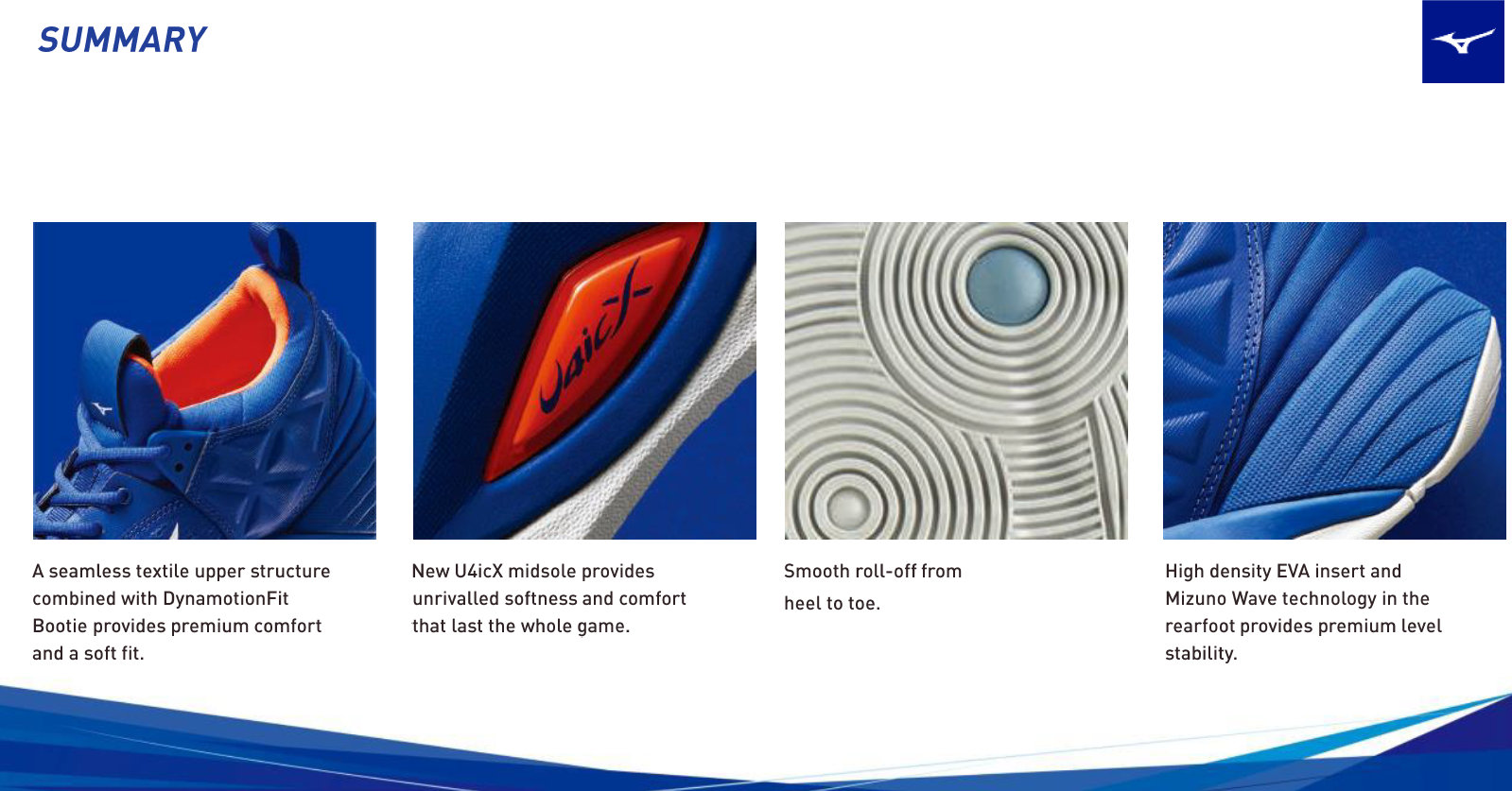 The Wave Momentum delivers the ultimate support that responds to the most intense change in stance with our Mizuno Wave technology.