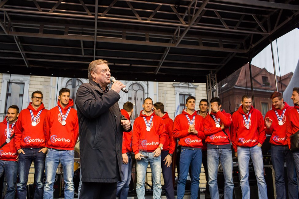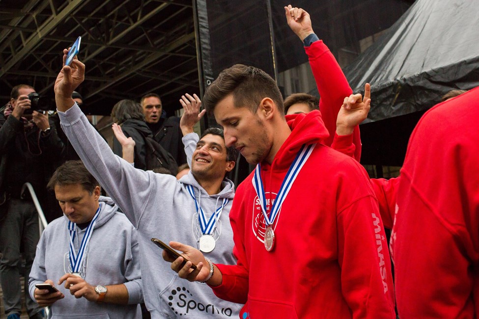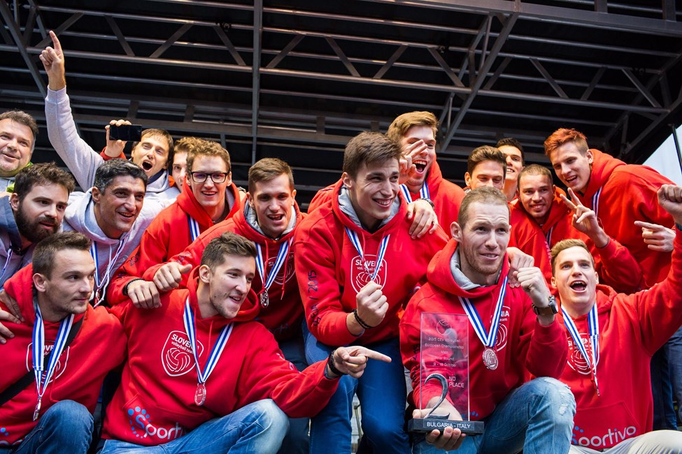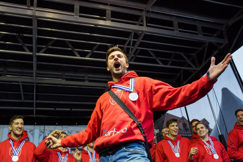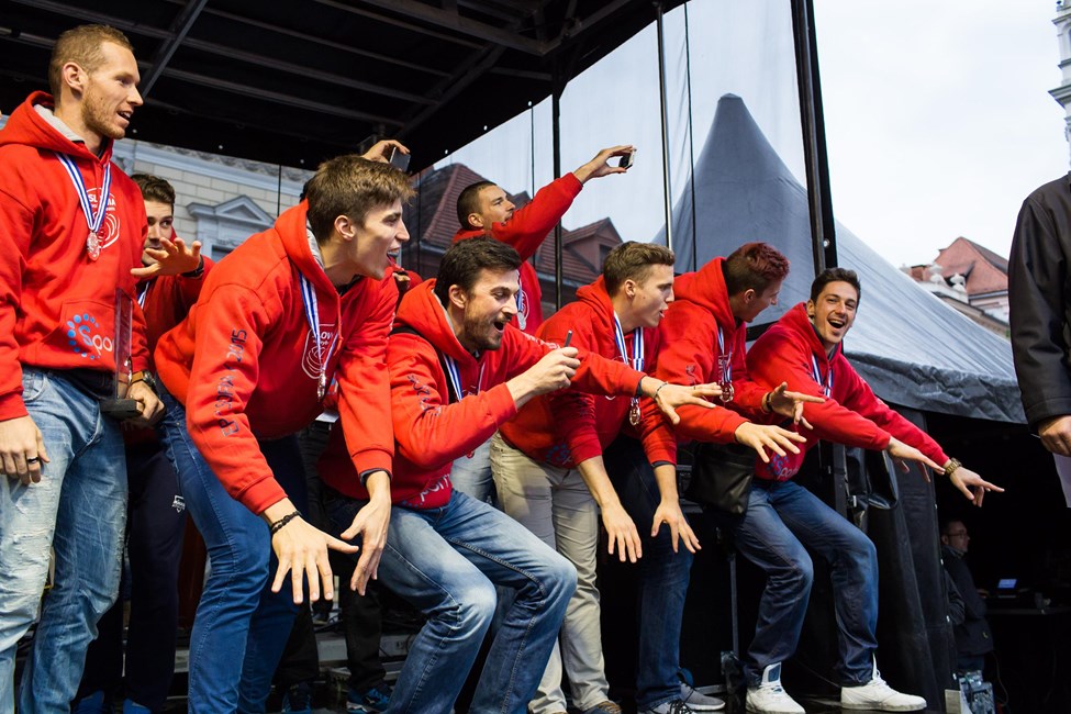Tine Urnaut, Klemen Cebulj, Dejan Vincic, Mitja Gasparini and team were welcomed by their loved ones and supporters when they returned home. The EuroVolley history makers were officially welcomed by the mayor of Ljubljana at Congress Square where the crowd cheered for their Volleyball Heroes.