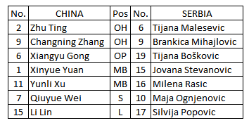 The expected starting lineups for China and Serbia are as follows: